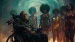Steven Hawking in Wheelchair with Galaxy Background and Hip Hop Women