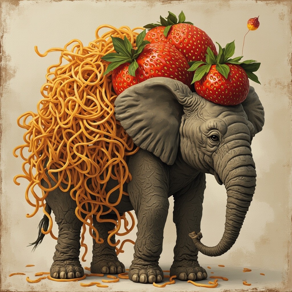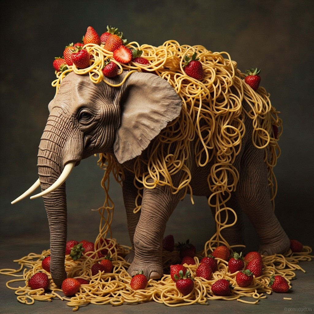 Strawberry Elephant and Toilet with Spaghetti Hair