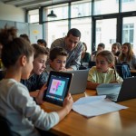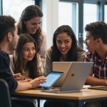 Modern Classroom with Diverse Students Collaborating on Group Project