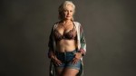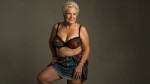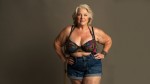 Mature Plus Size Woman in Mixed Color Bra and Jeans Posing