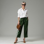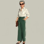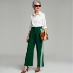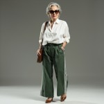 Stylish 50-Year-Old Woman with Gray Hair and Adidas Green Pants