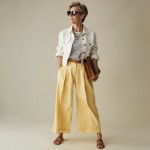 Stylish 40-Year-Old Woman in Yellow Trousers and White Denim Jacket