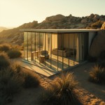 Drone View of Modern Glass House in Rocky Desert Landscape