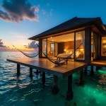 Luxury Stilted Villa Over Turquoise Water at Sunset