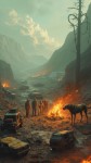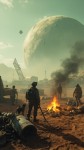 Survivors Huddling in Post-Apocalyptic Earth with AI Dog Guard