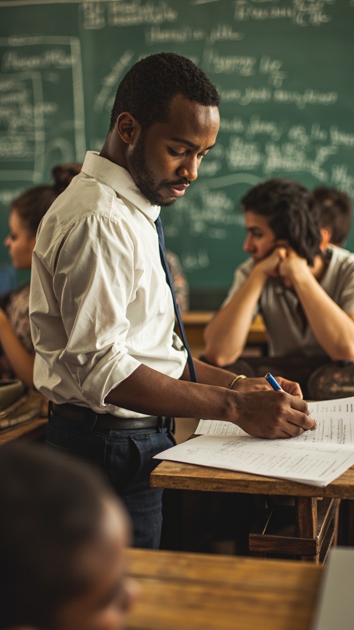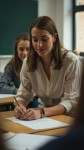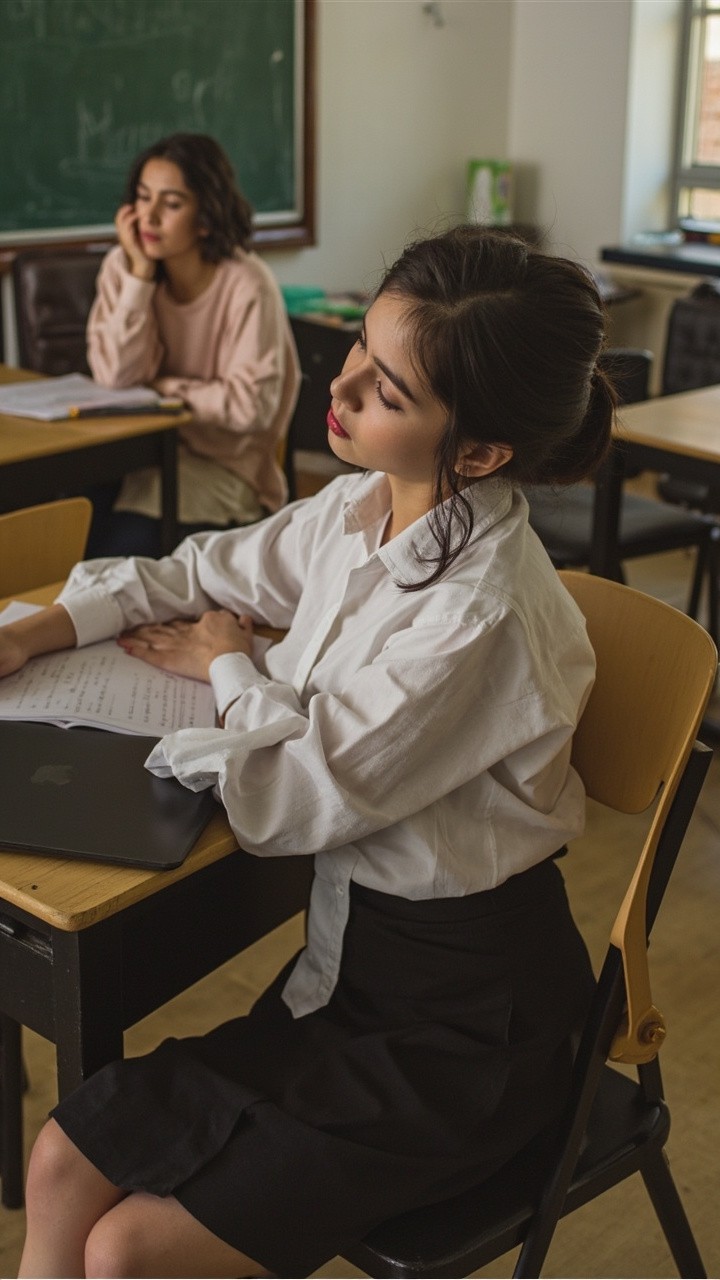 Teacher's Doppelgänger Studying in Classroom