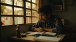 Indian Teenage Boy Studying by Window in Middle-Class Neighborhood
