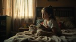 Teenage Girl Grieving Loss of Beloved Cat in Bedroom