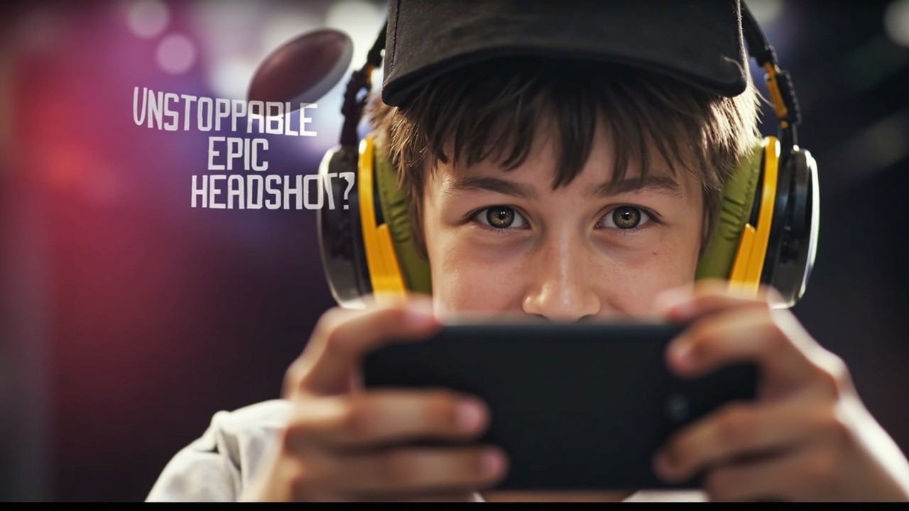 Teenager Winning at Free Fire Max on Mobile with Unstoppable Headshot Background