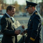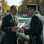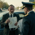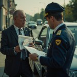 Roadside Inspection Scene with Worried Businessman and Russian Traffic Officer
