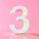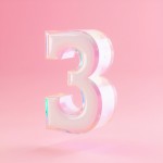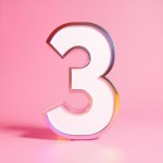 3D Modern Number 3 Hovering on Soft Rainbow Border with Raspberry Background