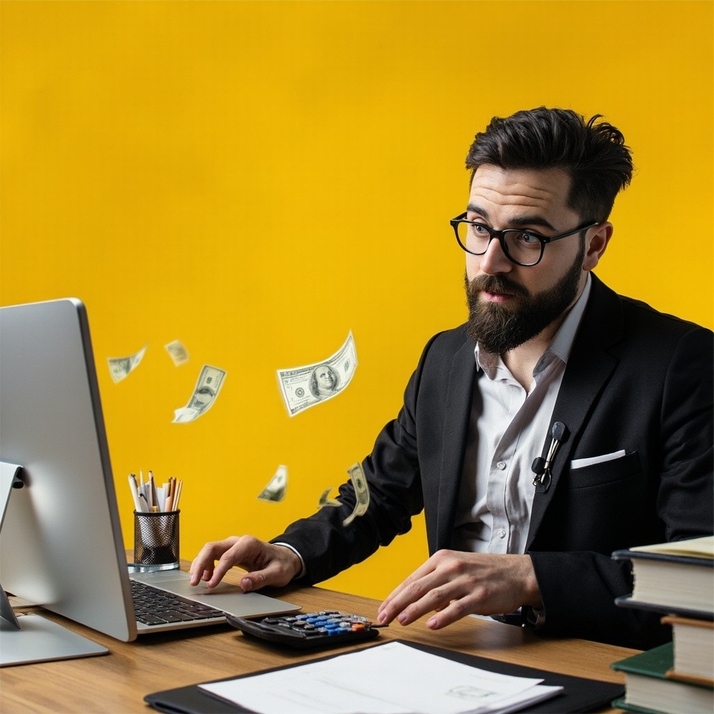 Accountant, Office, Money, Calculator, Computer, Yellow and Black