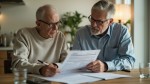Older Adult Reviewing Financial Documents with Caregiver in Daytime Home Interior