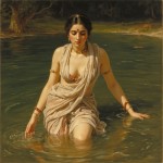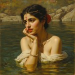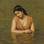 Raja Ravi Varma Portrait of Beautiful Woman Bathing in River, Mahabharata