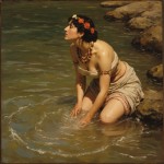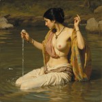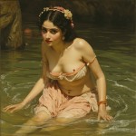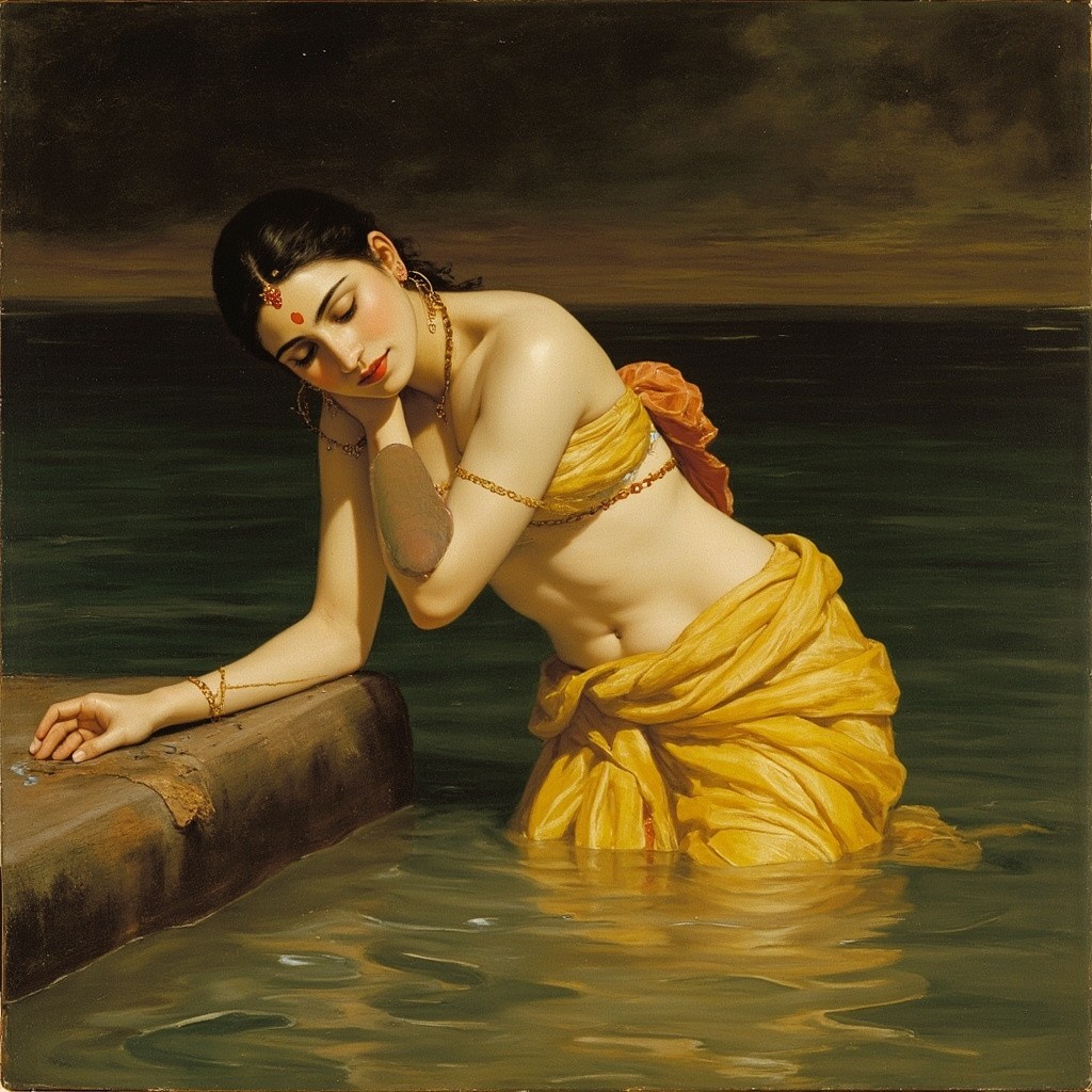 Raja Ravi Varma Style Portrait of Woman Bathing in River