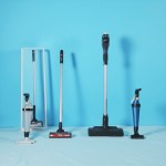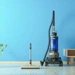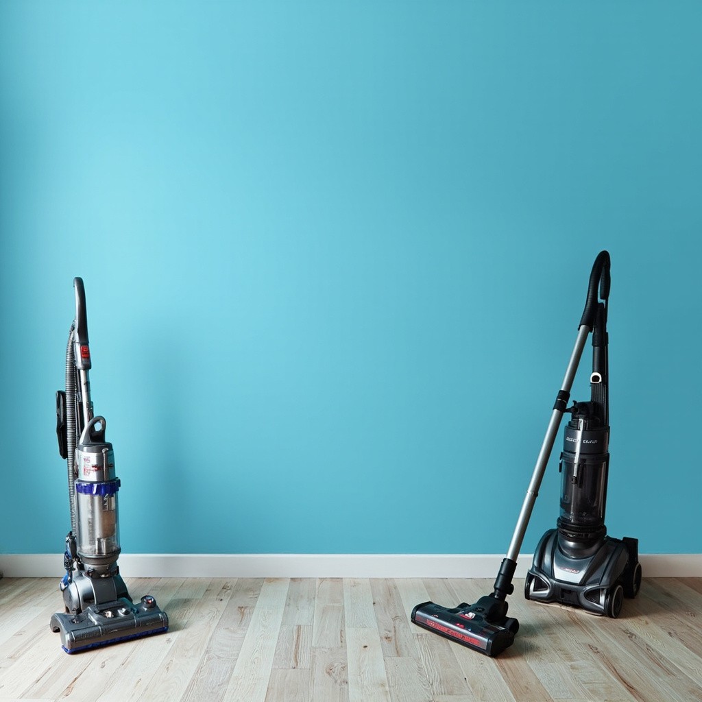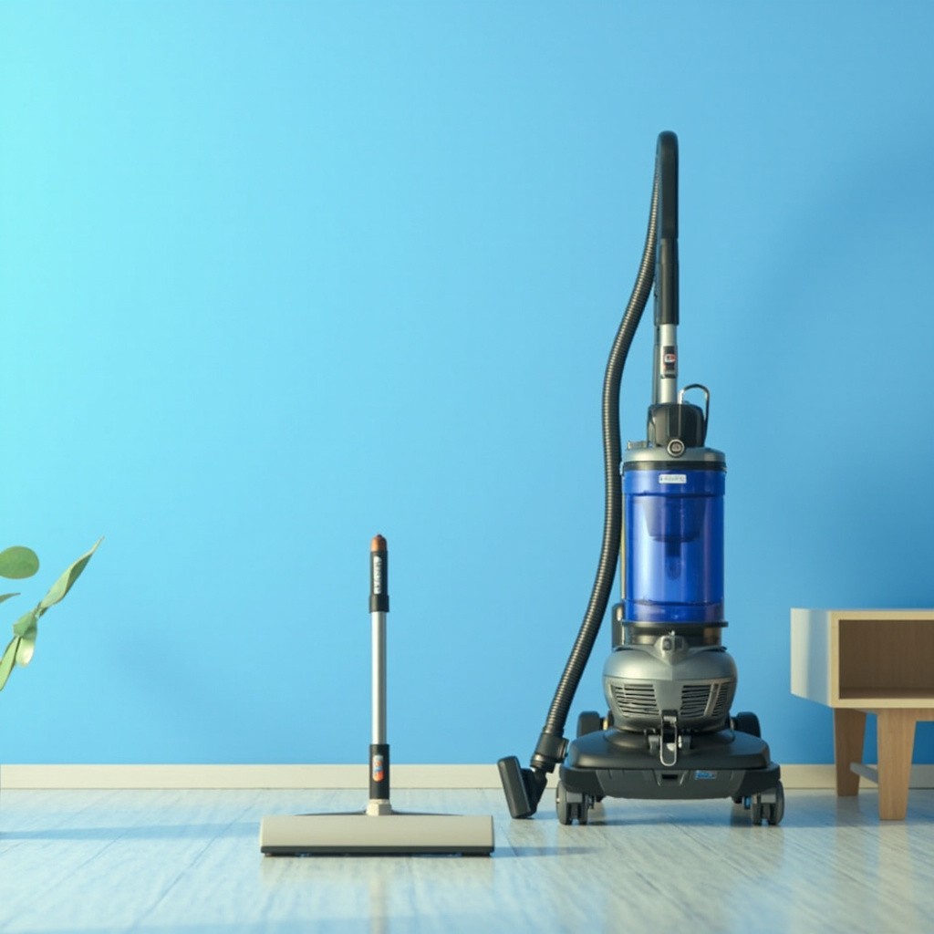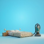 Bedroom with Vacuum Cleaners on Blue Background