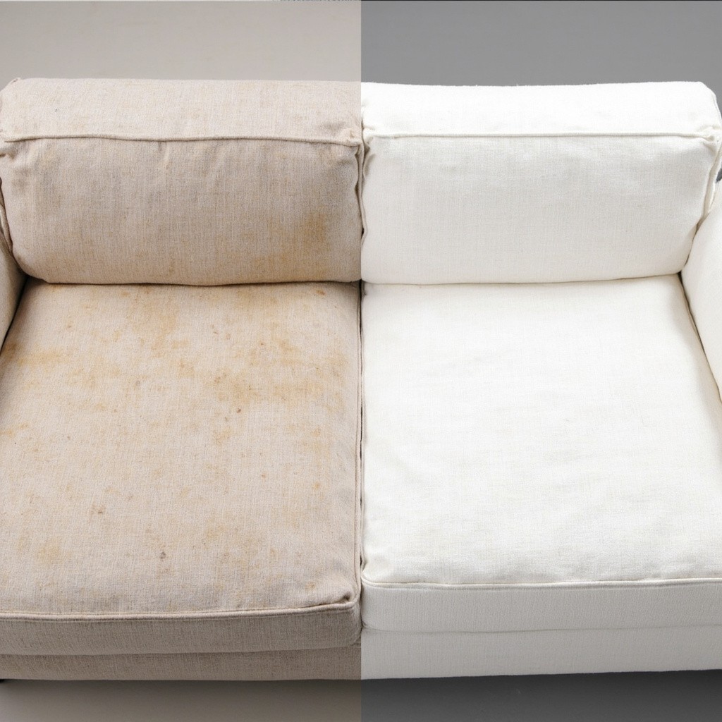 Contrast Between Dirty and Clean Fabric Sofa