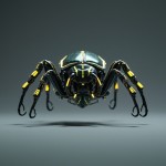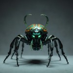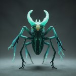 Bioluminescent Alien Creature with Beetle-Spider Characteristics on Gray Studio Background
