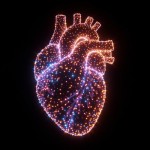 Futuristic LED Dot Human Heart on Black Background
