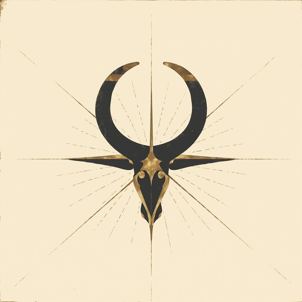 Luxury minimalist zodiac poster design for the sign of Taurus. High-end celestial astrology aesthetic, museum-grade, gallery-quality wall art. Vertical poster composition with a large, central geometric Taurus symbol. Perfect axial symmetry and bold, outward-reaching form. Abstract and archetypal representation inspired by initiative, courage, and energy.