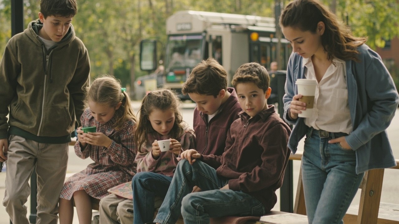 Boys and Girls Sipping Coffee While Walking