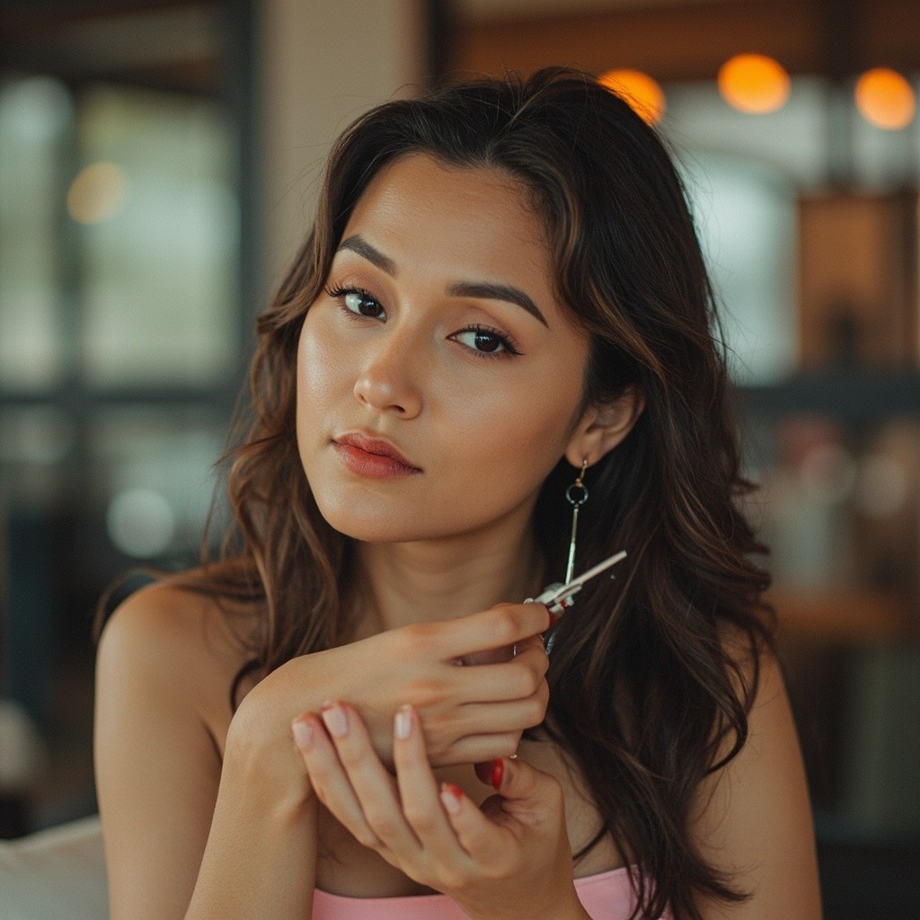 Brunette Holding Object for Advertising