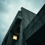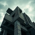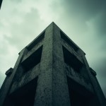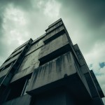 Low-Angle Shot of Brutalist Concrete Building Under Cloudy Sky