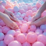 POV view inside a surreal sea made entirely of soft, colorful jelly orbs and translucent candy gel — in bright pastel tones (pinks, blues, purples). Hands gently submerge into the bouncy surface, pressing and scooping the semi-liquid orbs. The material is visually delicious and pleasing to the touch, like edible water pearls. Sunny lighting, macro close-up textures, cinematic vertical composition, realistic style, 9:16 aspect ratio.