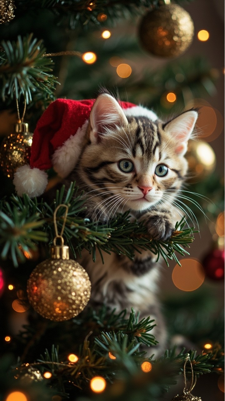 Christmas Kitten, Christmas Tree, Diamond Scattering, Fantasy, Mystical, Gifts, Christmas Ornaments