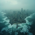 City Engulfed by Water Waves