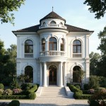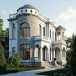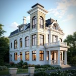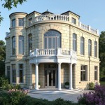 Elegant European Villa with Classical Stone Facade and Lush Garden