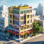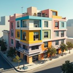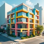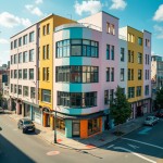 Postmodern Commercial Building with Asymmetrical Façade and Playful Colors