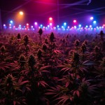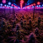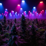 Colorful Lights Over Cannabis Plant Field