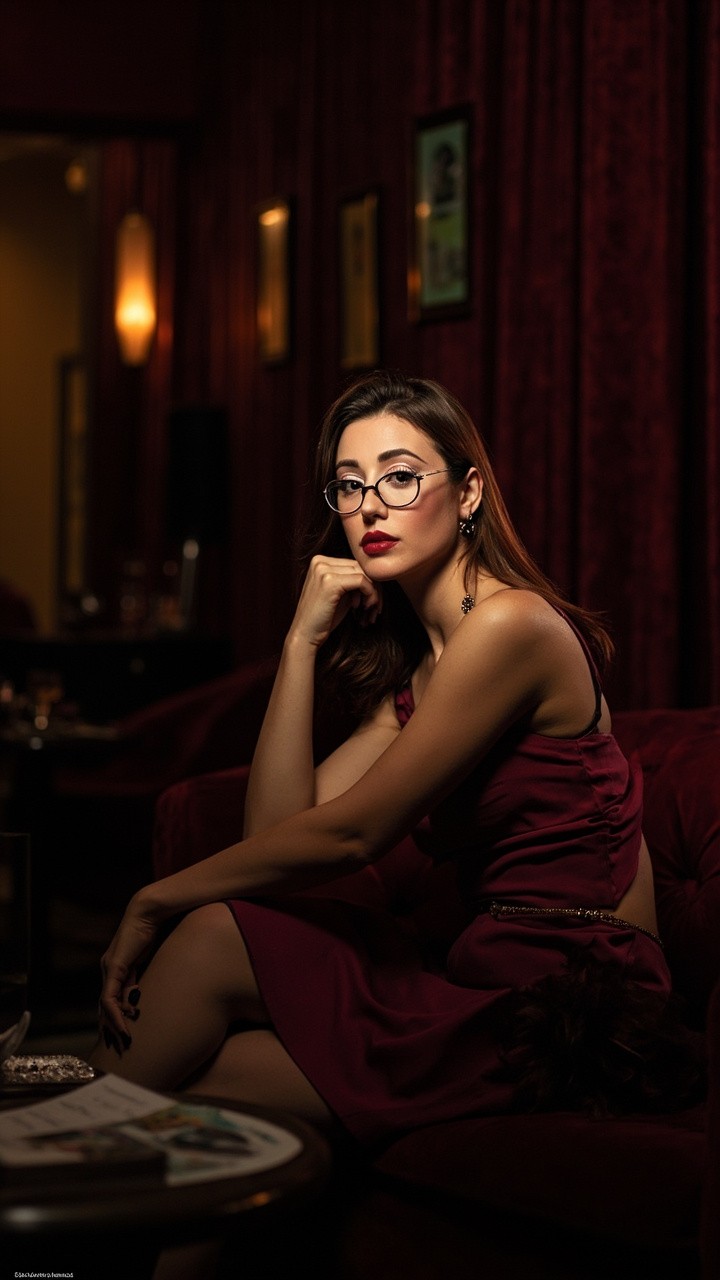 Elegant Woman Posing in Luxurious Velvet Environment