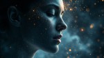 Stardust Human Face with Cosmic Light on Deep Space Background