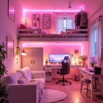 Korean Style Loft Bedroom with Gaming Setup and Makeup Table