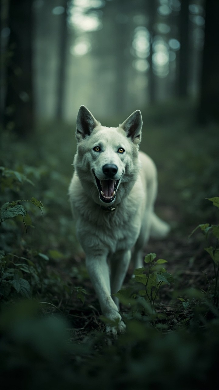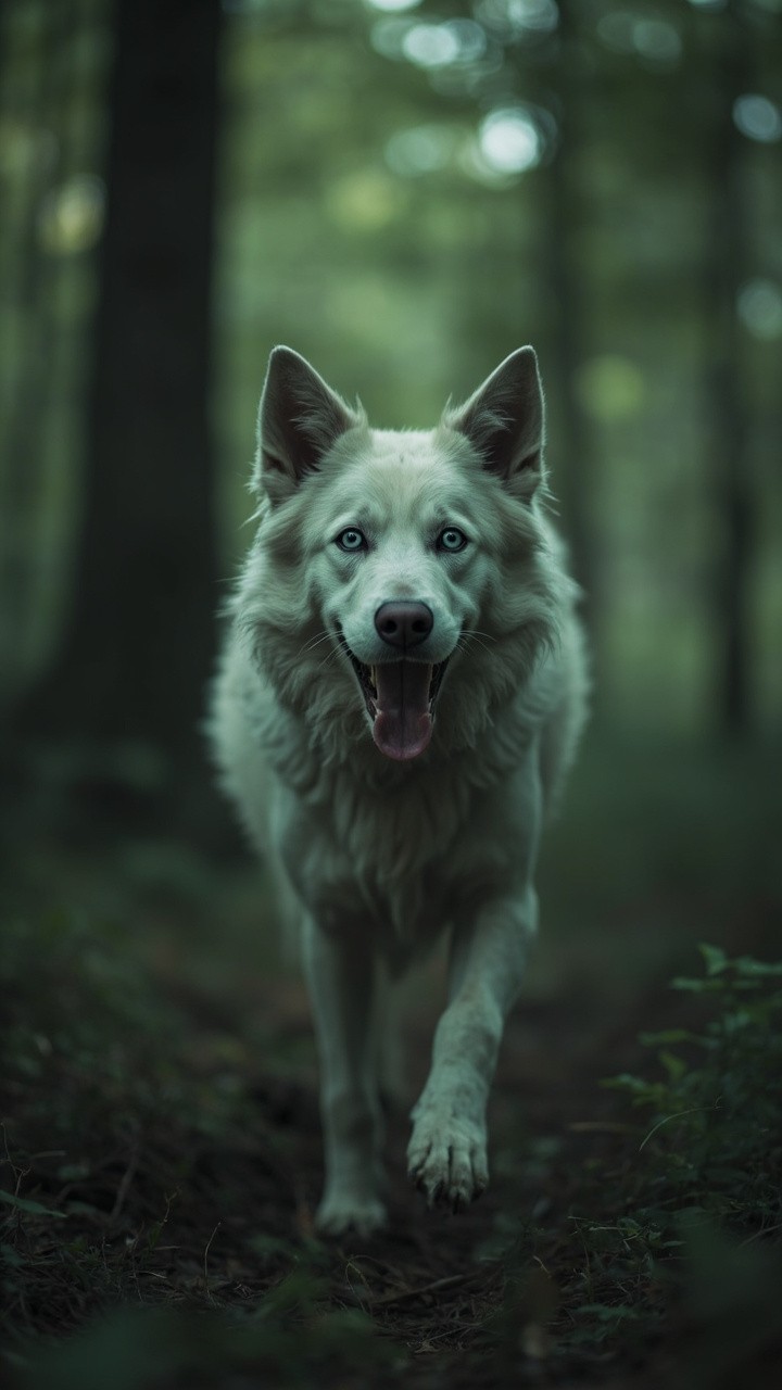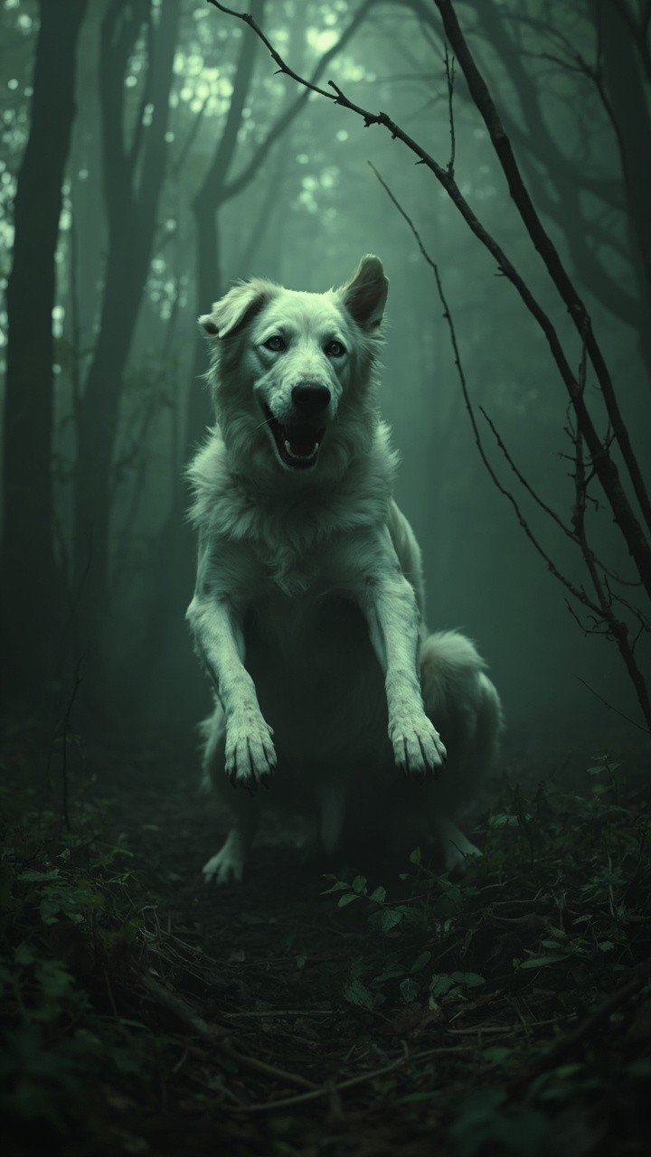 Forest with White Lady and Creepy Dog