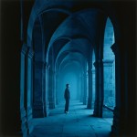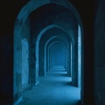 Cyberpunk Cloisters in Dark Gray and Blue, Nostalgia Core Minimalism