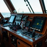 Large Ship's Instrument Panel with Radar and Echo Sounder