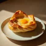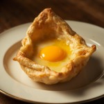 Georgian Khachapuri Adjaruli on Warm Neutral Background in Soft Natural Light