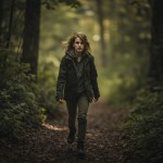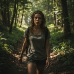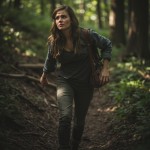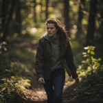 Courageous Young Woman Walking in Forest