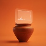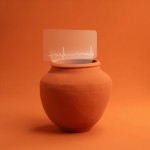 Terracotta Pot with Digital Payment Interface on Warm Background