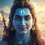Divine Lord Shiva Portrait with Radiant Blue Aura and Mount Kailash Background