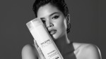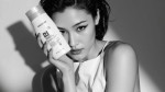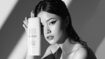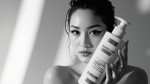 Black and White Asian Woman Holding Mageline Shampoo Bottle Portrait