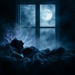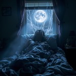 Magical Realism Bedroom Silhouette with Moonlight and Dreamlike Atmosphere