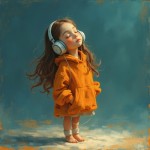 Dreamy Girl in Orange Hoodie with Headphones Painting