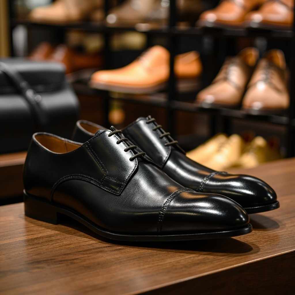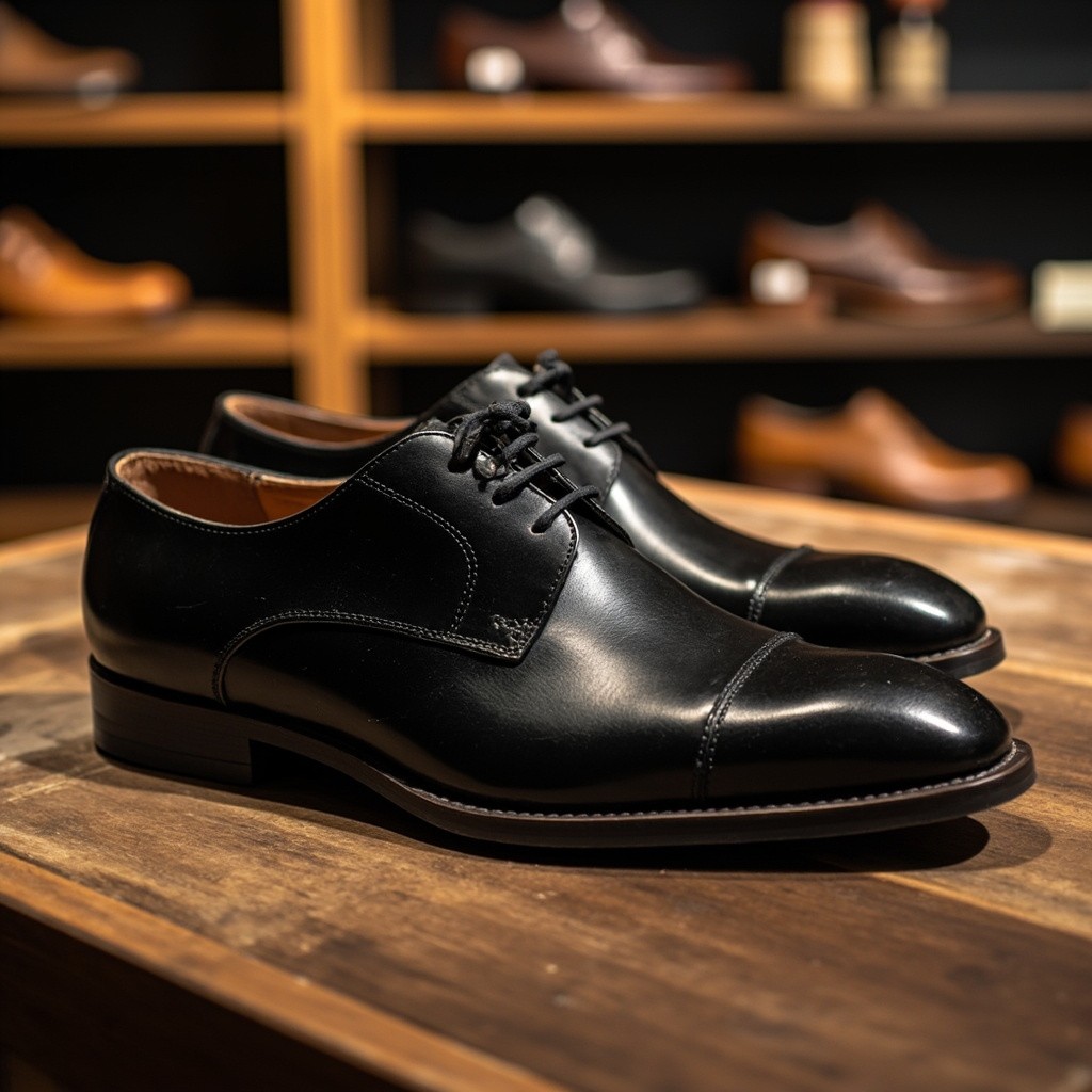 Black Leather Men's Shoes in Landscape View