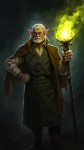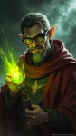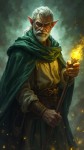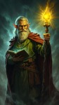 Male Elf Librarian with Glasses Holding Glowing Staff, Dungeons and Dragons Background
