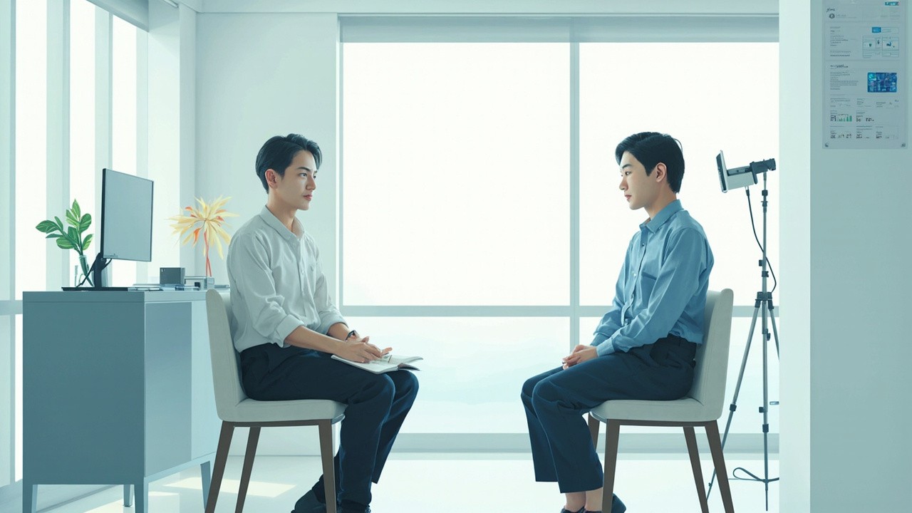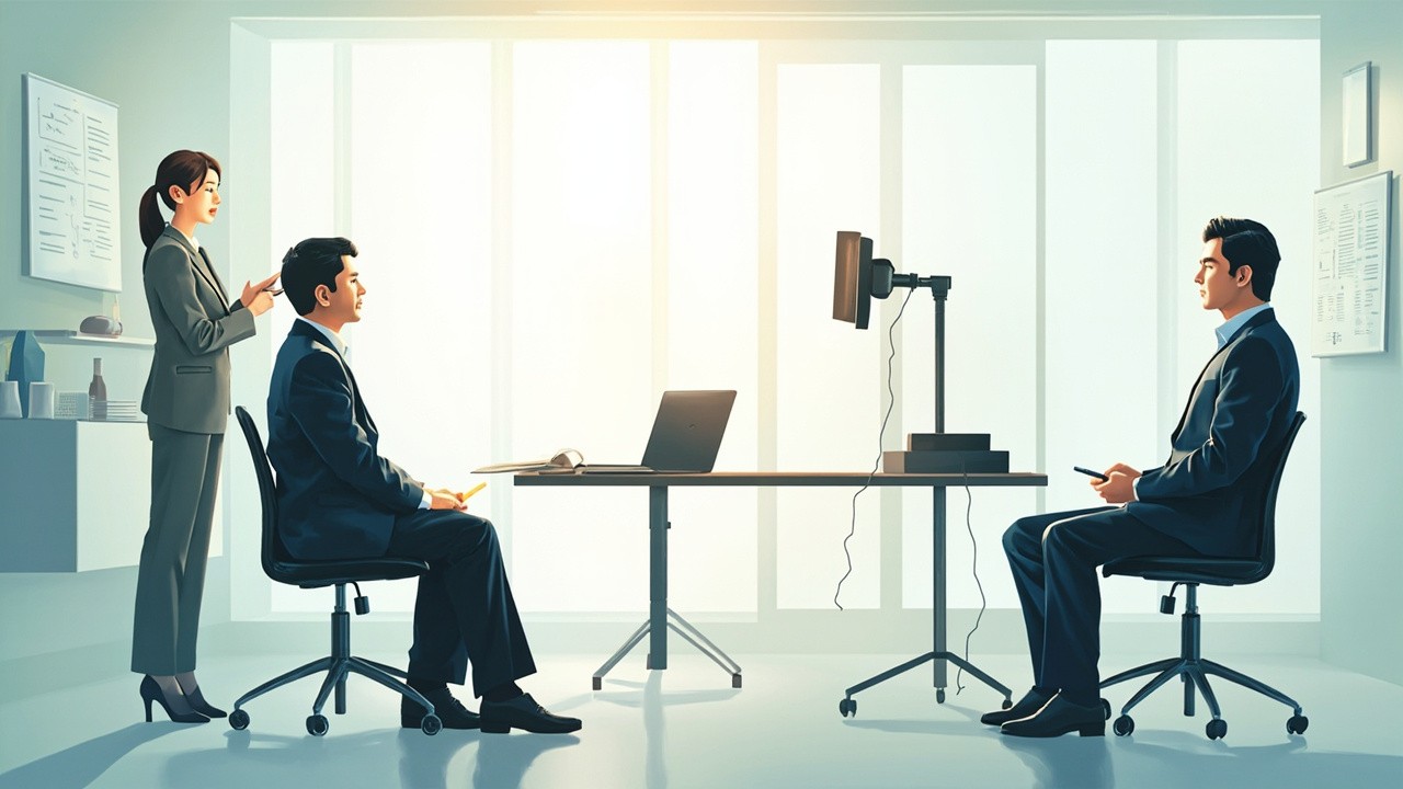 Professional Illustration of Ethical Lie-Detection Procedure in Interview Room