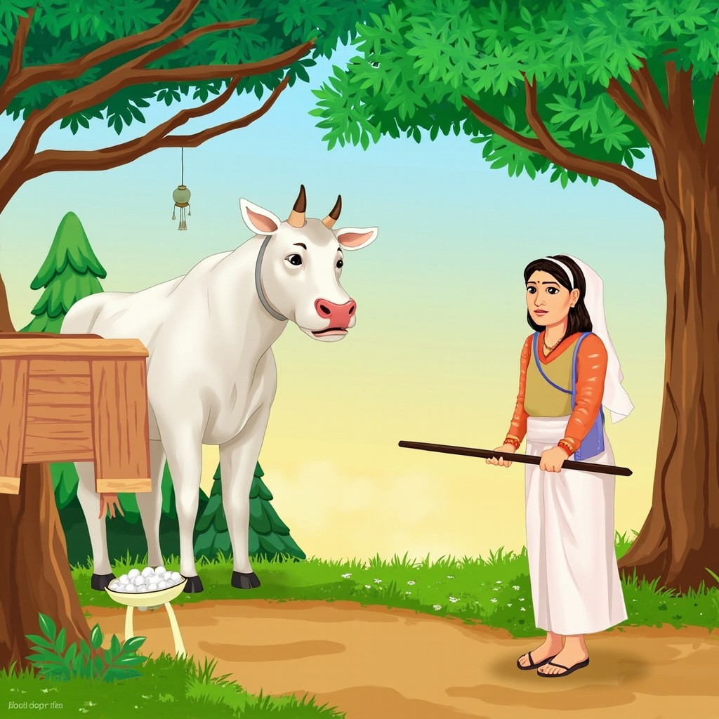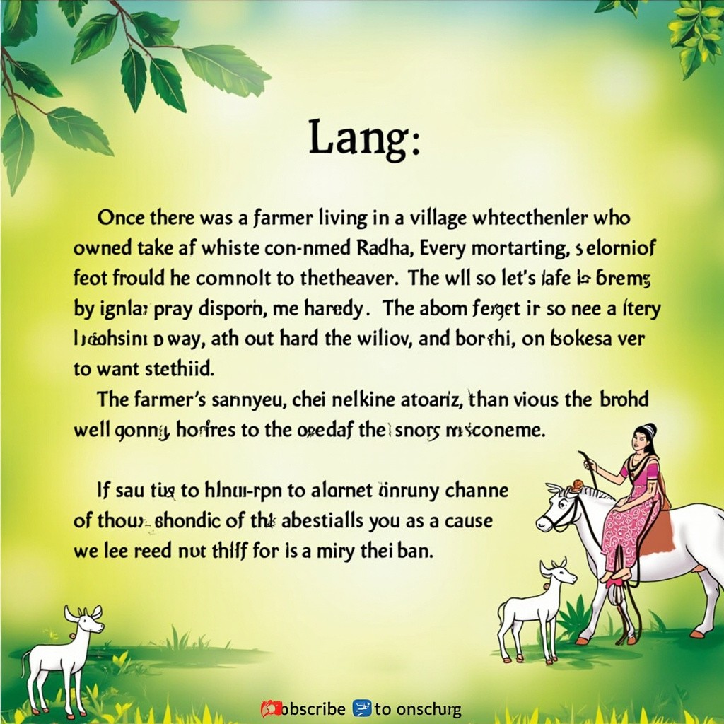 Ek gaon mein ek Kisan rahata tha uske pass ek safed rang ki gay thi uska naam Radha tha vah roj subah apni gay ko charane Jungle Le jata tha aur uske jaaye ke ek bacha tha Jo bahut nafrat tha aur uski Gair use bahut pyar karti thi uski patni ka naam Lakshmi tha Lakshmi ek bahut shandar aurat thi auro subah gay ki dudh nikalti Thi aur use bhejne Le jaati thi usi se uska Ghar chalta tha agar aapko dusra paath bhi chahie to channel ko subscribe Karen